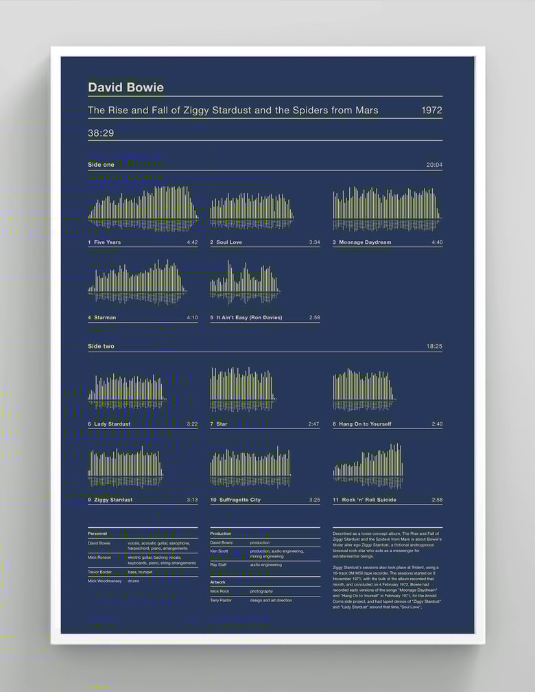 David Bowie The Rise and Fall of Ziggy Stardust and the Spiders from Mars Album Sound Wave Print £42.00
