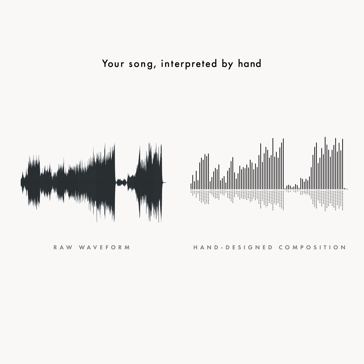 Each design is not simply generated — it is individually composed by myself, balancing rhythm, spacing, and form to create a clean, modern aesthetic inspired by your music.