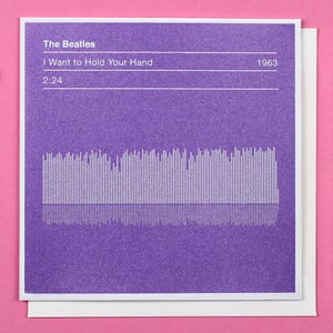 The card displays the vital info including the song title, song length, date of release and graphic sound wave of The Beatle's classic pop smash ‘I Want to Hold Your Hand’. An ideal card to celebrate an engagement or anniversary with the music lover in your life!